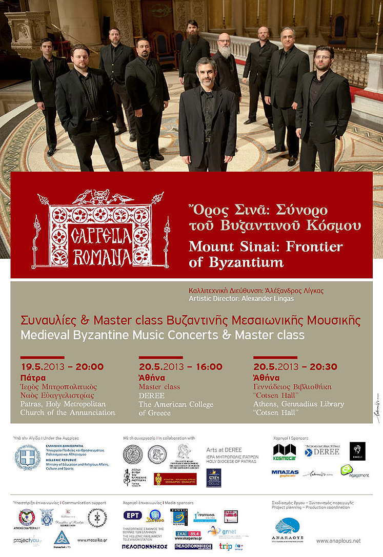 Ειδική μνεία γίνεται στην καταλυτική συνδρομή τών Cappella Romana, χάρη στην αφιλοκερδή προσφορά των οποίων υλοποιήθηκε το πρόγραμμα.