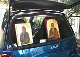 An exhibit of forty hand-made icons, works which support mastering the art of hagiography by Varvara Vervenioti, Rallou Koussi, Constantina Sarantakou, and Nikos Sarris, were exhibited – all interspersed with Mercedes cars and accessories. The students created the icons in one year's time during their studying of hagiography in workshop held by Mrs. Anthi Valsamaki.