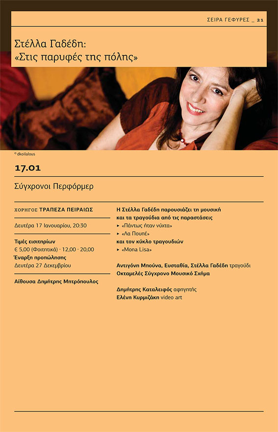Musiciens : Spiros Panagiotopoulos: tambours et percussions / Charis Mermigas: contrebasse et basse électrique / Akis Katsoupakis: piano et instruments à touches / Stella Gadedi: piano / Nikos Delaportas: guitares / Yannis Papanastasiou: saxophone / Yannis Oikonomidès: trompette / Chris Humphrys: violoncelle / Kostas Anastasopoulos: violon